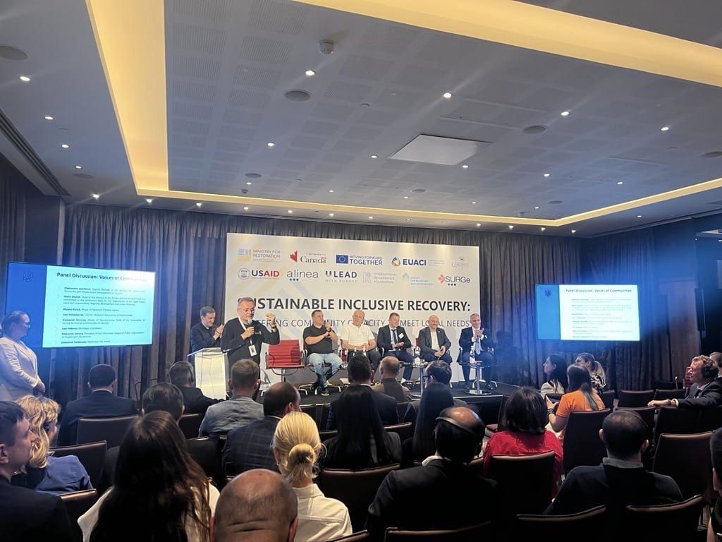У червні в Лондоні "ІСАР Єднання" організували серію заходів за участі лідерів країн, представників бізнесу, фінансових організацій. Метою стало нагадування про роль і вплив громадського сектору у процесах. Як свідчення вони привезли з собою фотовиставку, яка показує, що вже зроблено сектором. Зруйновані будинки, школи, комунальні приміщення - відновлюються вже зараз завдяки ініціативі та роботі громадських організацій.