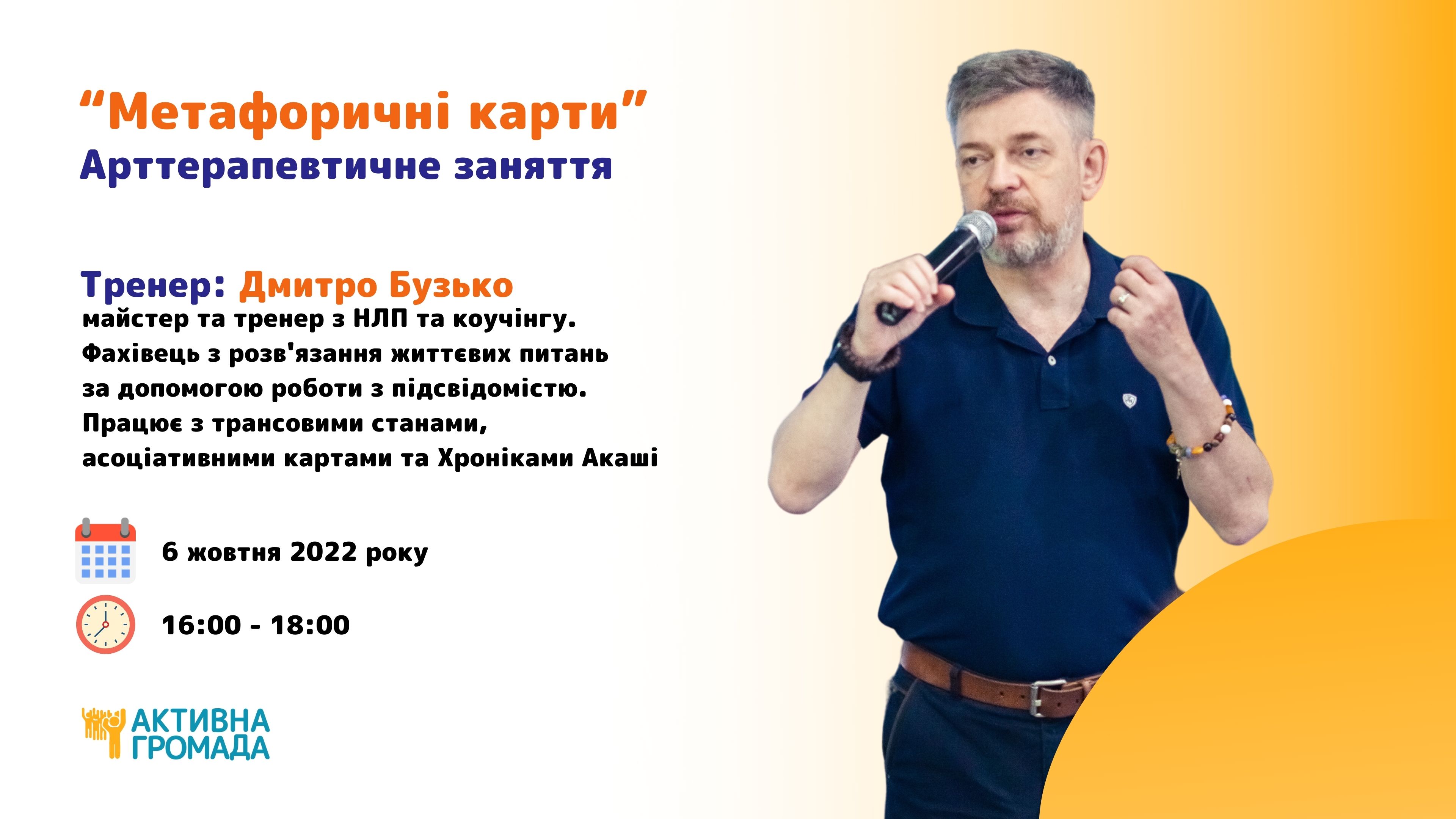 Тренер: Дмитро Бузько, майстер та тренер з НЛП та коучінгу. Фахівець з розв'язання життєвих питань за допомогою роботи з підсвідомістю. Працює з трансовими станами, асоціативними картами та Хроніками Акаші.