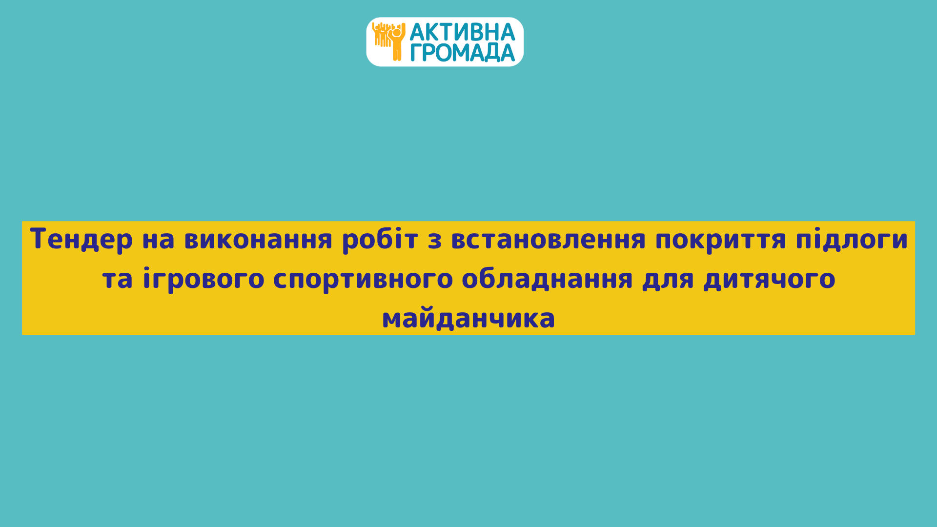 Всеукраїнське громадське об’єднання “Інститут “Республіка” (далі – ІР) за підтримки Фонду Августа Людвіга Хартволла, в рамках проєкту ‘‘Радість Гри’’ оголошує тендер на виконання будівельних робіт з встановлення гумового покриття підлоги та ігрового спортивного обладнання для дитячого майданчика.