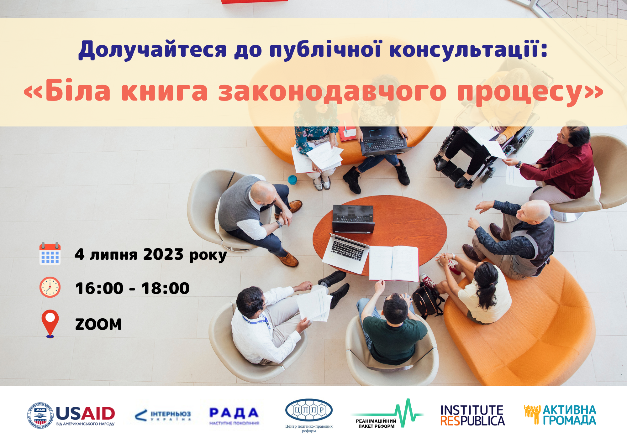 Перша публічна консультація відбудеться вже 4 липня 2023 року. Час проведення: 16:00 - 18:00.