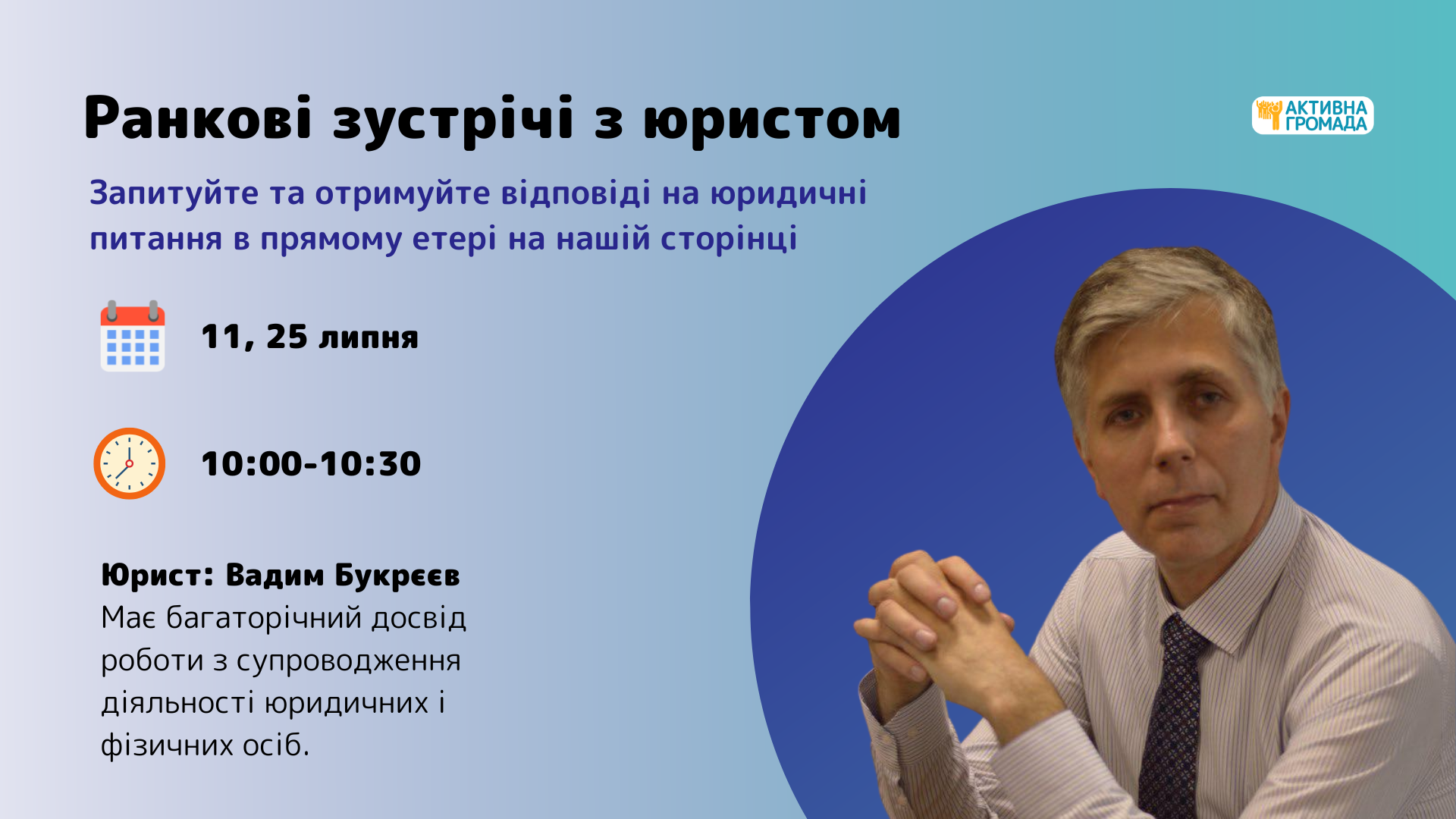 Наш юрист готовий відповісти на ваші запитання та надати роз'яснення на різні теми, пов'язані з правом.