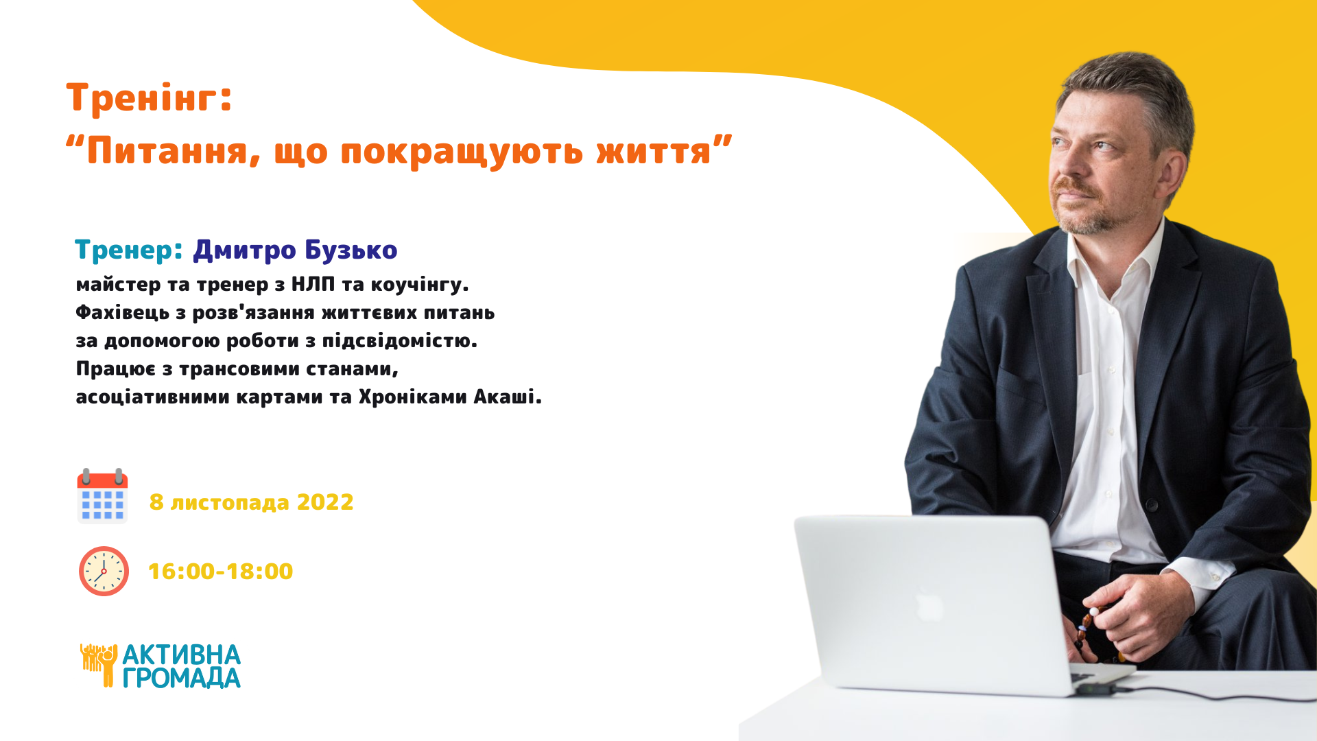 Постановка запитань самому собі чудово мотивує людину діяти, прагнути до кращого і втілювати мрії у реальність. Як правильно ставити питання і які мають бути ці питання - пговоримо на тренінгу з Дмитром Бузьком.