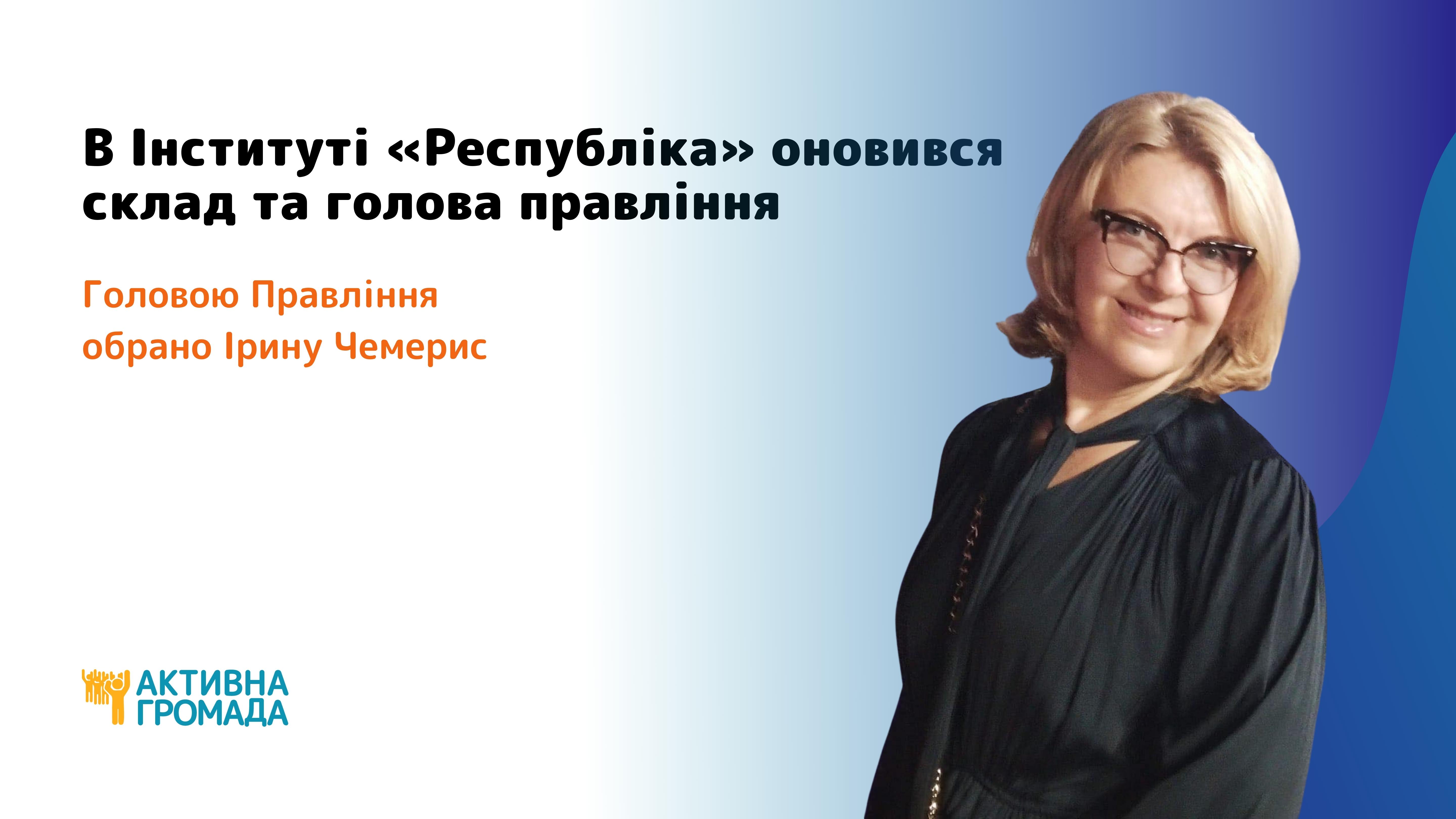 Наприкінці червня 2022 року шляхом голосування головою Правління ВГО Інститут «Республіка» обрано Ірину Олександрівну Чемерис.