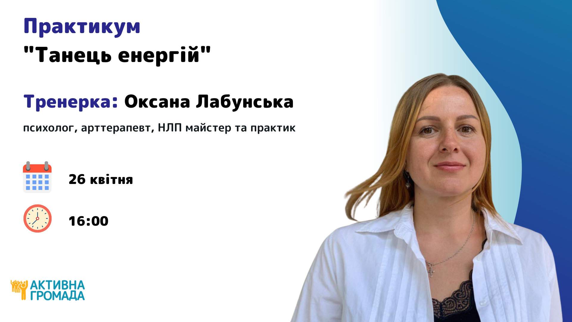Зустрічі веде організаторка заходів ВІ “Активна Громада” Інна Душка з командою психологів/коучів ВІ “Активна Громада”.