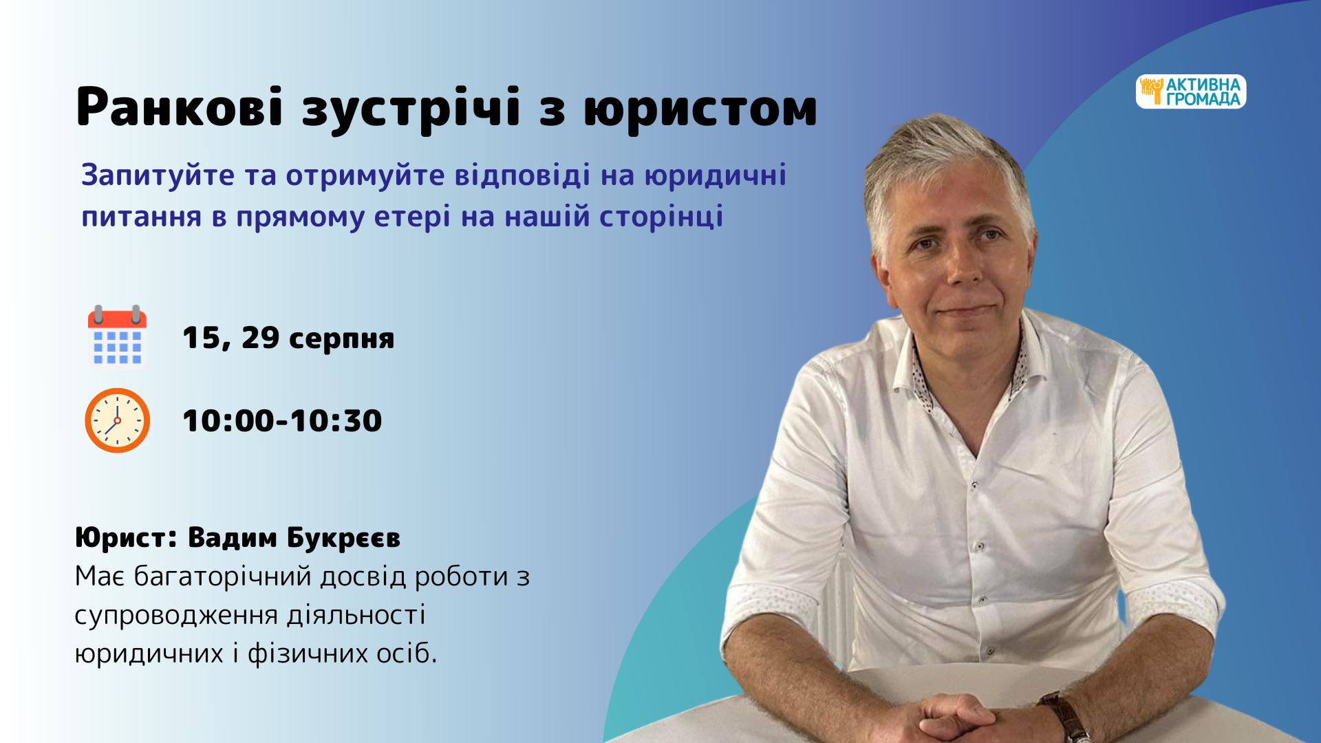 Місце: прямий ефір на сторінці ВІ “Активна Громада” у Facebook.