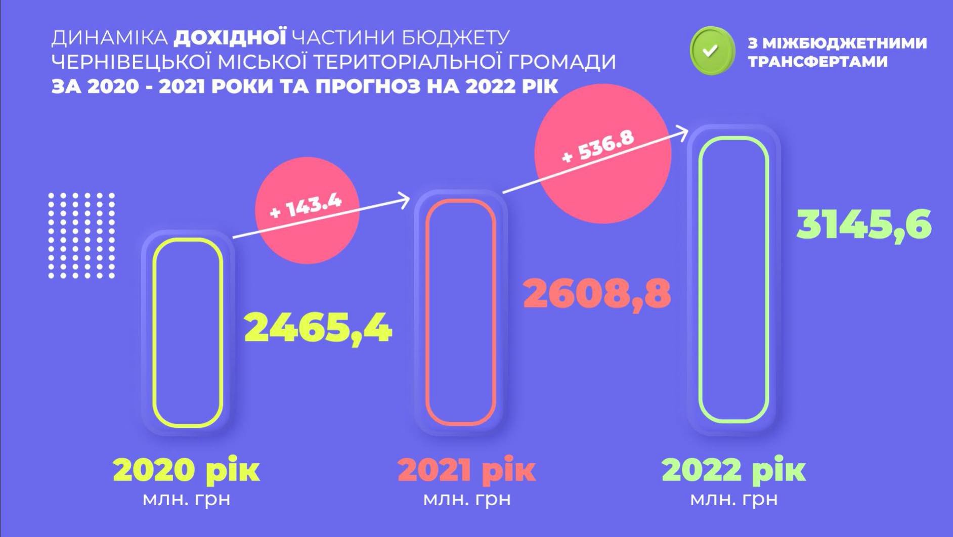 - загальний розмір бюджету - 3145,6 млн. грн., а це на 536,8 млн. грн. більше, аніж в 2021-ому році;