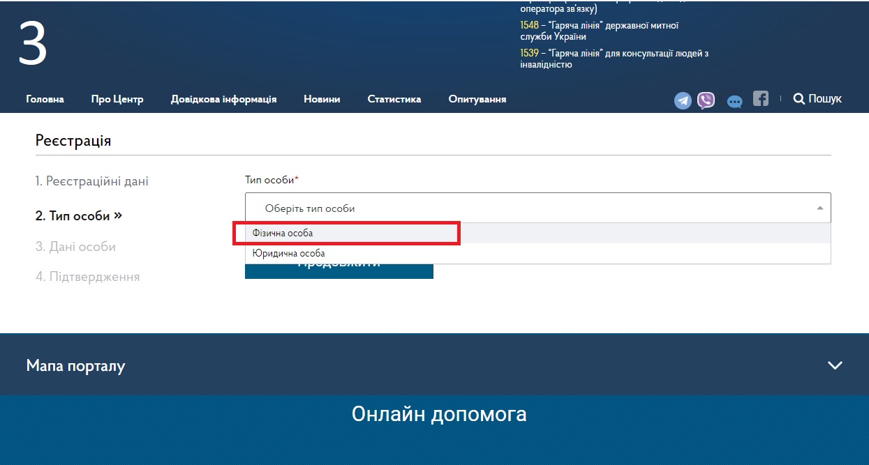 Вибрати тип особи. Якщо ви подаєте заяву від себе, як від мешканця - потрібно поставити “Фізична особа” (Фото 3)