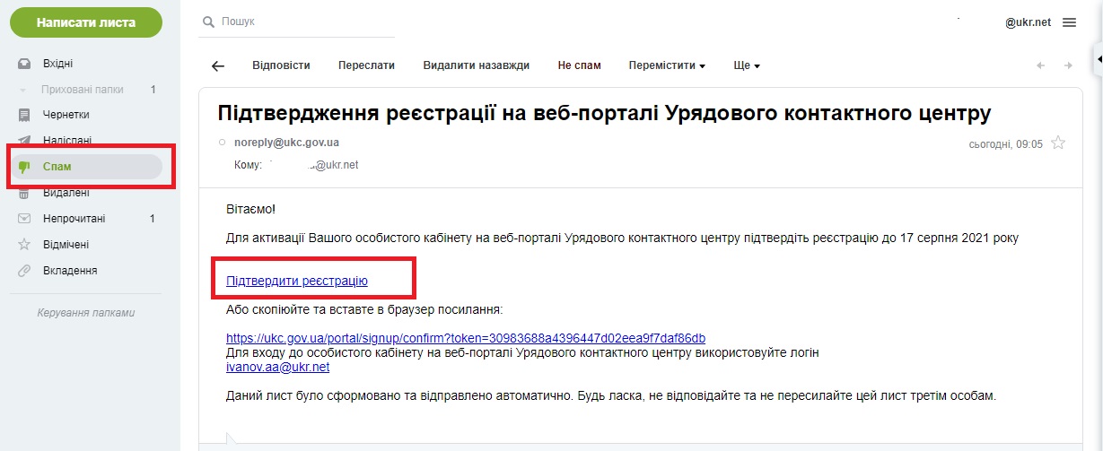 Якщо все вірно - на вашу пошту буде надіслано лист для підтвердження реєстрації. Обов’язково перевірте папку “Спам” т.к. може потрапити туди. Потрібно нажати на посилання “Підтвердити реєстрацію“ (Фото 5 та 6)
