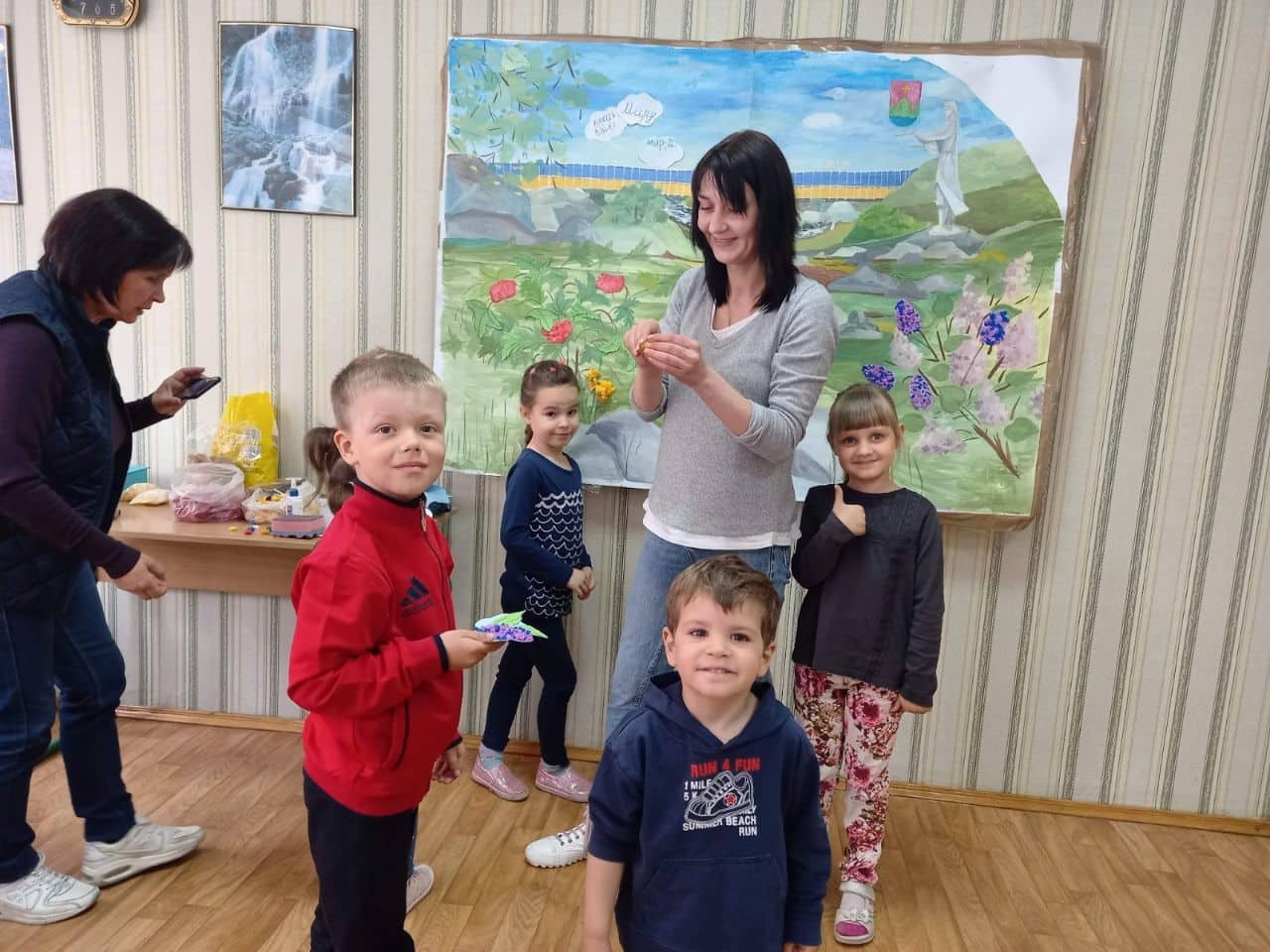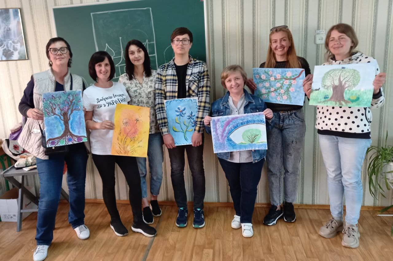 У нас вже в перший день було чимало дітей – десь 12. І тоді стало зрозуміло, що це дуже актуально і що це буде працювати. Я ще перед першим заняттям попросила мене підстрахувати свою колегу-волонтерку Людмилу. А вона ще, на щастя, також викладач малювання. Як то кажуть – зорі зійшлися. Але гурток – це не лише діти і викладачі. Це ще і матеріали! В мене дуже багато всього вдома було, я «вигребла» просто все. Щось нам дав Богуславський волонтерський штаб. І потім всі відгукнулися, нам почали все зносити: фарби, олівці. Люди дуже багато і зараз приносять. Тобто, ті, в кого є можливість, намагаються кожен раз щось дати. Навіть, коли вже кажеш, що все є, вони, все одно, чи печиво, чи цукерки приносять.