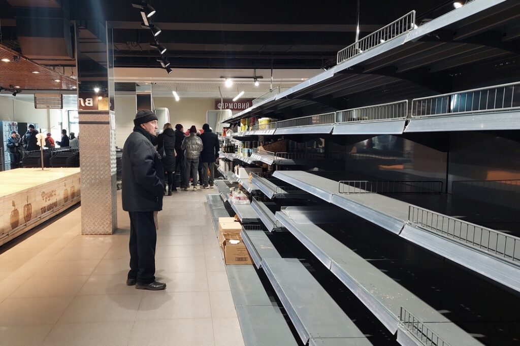 Дорогою вже бачила військову техніку, але приїхавши в місто, також не побачила особливого ажіотажу, невеликі черги в банкомати та за продуктами. Справжній хаос почався 26-го.