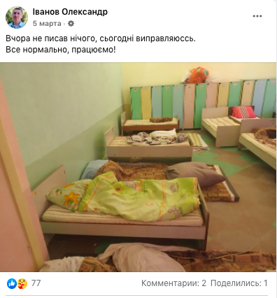 - Дома, тихо спав, нікого не чіпав і тут - різко почалося. Прокинулися від вибуху, в Краматорськ прилетіло декілька ракет. Це було дійсно дуже гучно. Діти відразу прокинулися, зрозуміли, що щось відбувається, відразу крики, плач. В коридорі сіли в темноті, незрозуміло що, всі трусяться. У мене відразу Інтернет пропав. Невідомо, що і до чого. Дуже тривожно.