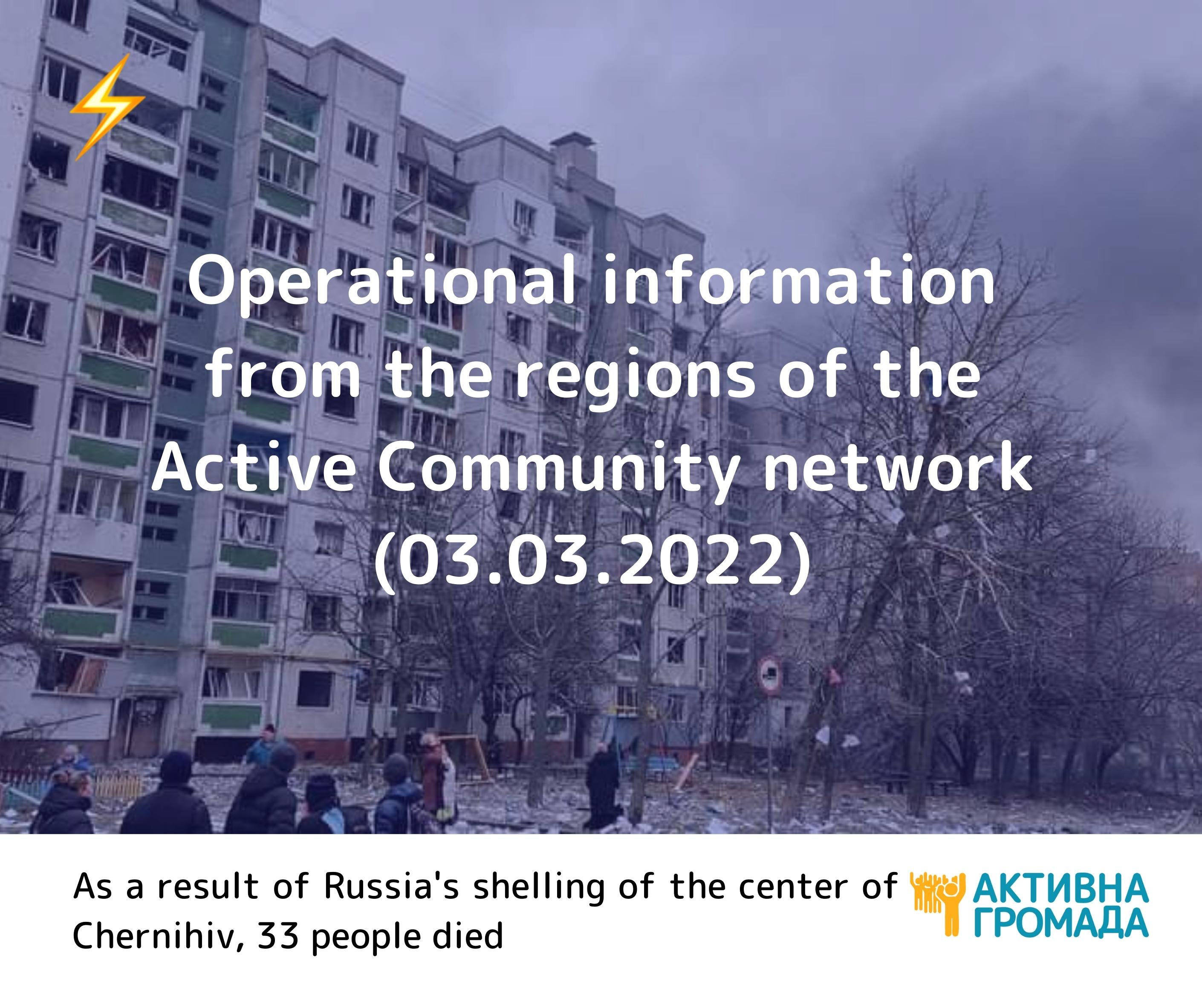 On the night of March 3rd, four explosions were heard in Kyiv. Air alarms continue to be heard in the cities and villages of Kyiv region. The Zhytomyr highway, the Bucha-Irpin-Gostomel highway, and the north of the Vyshhorod district remain dangerous. The house where the founder of the "Active Community" lives was almost shelled.