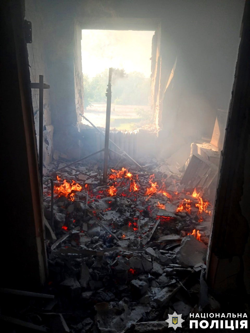 The russian army attacked the Nikopol Raion four times on the night of May 7. Three private houses, an outbuilding, a shop and a gas pipeline were damaged. There are no casualties or injuries.