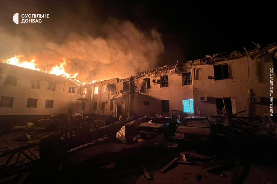 The russian troops conducted an air strike on Toretsk and hit the police administrative building. The enemy shelled the village of Petrivka with artillery.