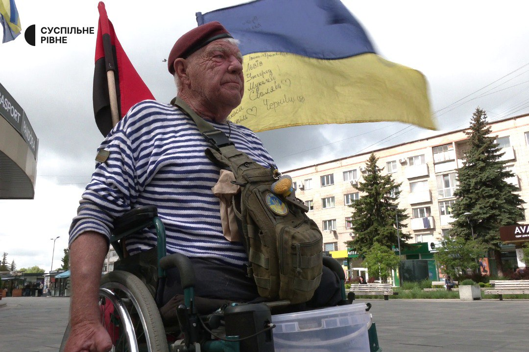 The legendary "Uncle Hrysha", Hryhorii Yanchenko, a 77-year-old volunteer from Kherson, arrived in Rivne. A man in a wheelchair has been volunteering since 2014. He travels around the cities of Ukraine to collect money for the purchase of drones for the military.