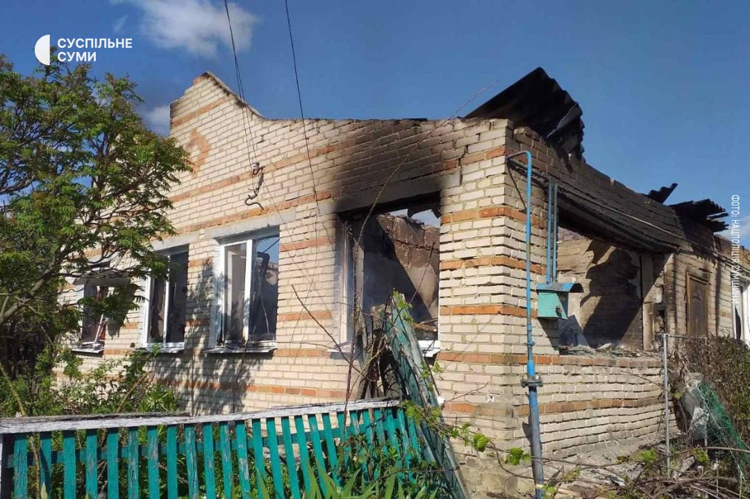 The russian army attacked 9 border communities in the Sumy Oblast on May 8. They used mortars and artillery. Also, hits by guided aerial bombs and kamikaze drones were recorded in the oblast. Three private households and a school building were damaged, while a former agricultural company building was destroyed.