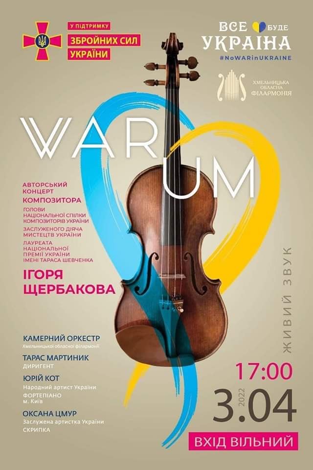 Хмельницький продовжує надавати прихисток вимушеним переселенцям. Серед них є відомі представники музичного мистецтва – видатний український композитор, заслужений діяч мистецтв України, голова Національної спілки композиторів України Ігор Щербаков, а також піаніст світового рівня, народний артист України Юрій Кот. Артисти готують великі благодійні концерти, кошти від яких будуть передані для допомоги Збройним Силам України.