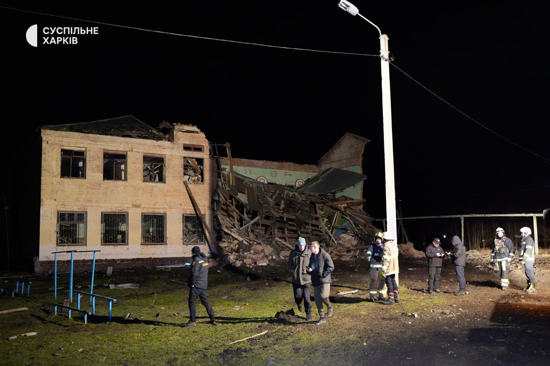 Ракета рф влучила по одній зі шкіл Основ’янського району ввечері 2 січня, частина двоповерхової будівлі обвалилася. На місці вибуху утворилася вирва діаметром близько десяти метрів, вона наповнена водою. Рятувальники припускають, що ракетний удар пошкодив підземний водогін. У щонайменше трьох приватних будинках поблизу побило вікна.