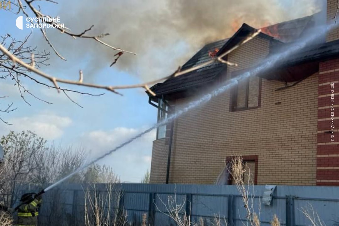 В Оріхові внаслідок російських обстрілів сталася пожежа в житловому будинку: горіла покрівля. Загалом вогнем охопило 150 кв. м. Постраждалих немає.
