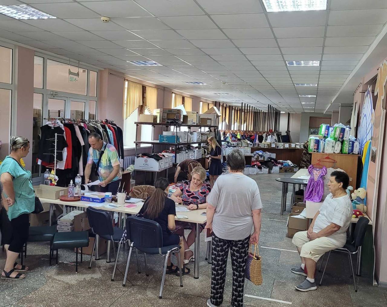 Сьогодні від Фонду Міжнародної Солідарності (Польща) отримано вантаж із медичними товарами, електрогенераторами, продуктами харчування, миючими засобами, засобами гігієни й дитячим харчуванням. Частину передано «Комбінату харчування учнів» (їжу для приготування обідів і вечерь прерселенцям, миючі, пральний порошок), частину управлінню охорони здоров’я (дефібрилятори, аптечки, турнікети), частину релокованому Харківському національному університету внутрішніх справ (побутову хімію).