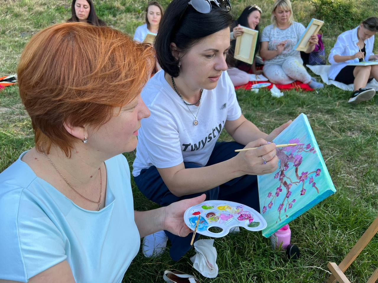 Ужгородські волонтери черпають нові сили на майстер-класах із малювання. На ці заняття записуються з осторогою і невпевненістю у собі, а йдуть повними сил, гарного настрою та ще й із власноруч намальованою картиною. Творчі майстер-класи влаштовують для волонтерів у рамках проєкту «Турбота: для тих, які тримають тил».