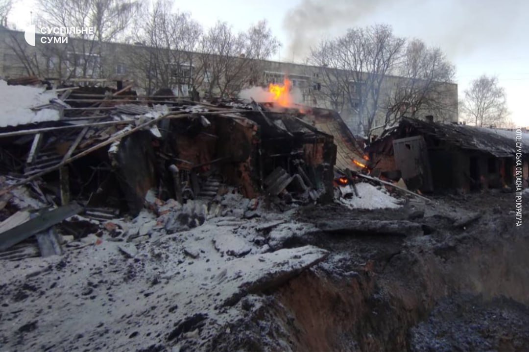 Вночі 13 січня армія рф вдарила по 4 громадам Сумщини. Зафіксовано 21 вибух. Зокрема, по Великописарівській громаді на Сумщині армія рф випустила 4 ракети С-300. Пошкоджено низку обʼєктів цивільної інфраструктури: 10 приватних будинків, лінію електропередач, ангар фермерського господарства тощо.