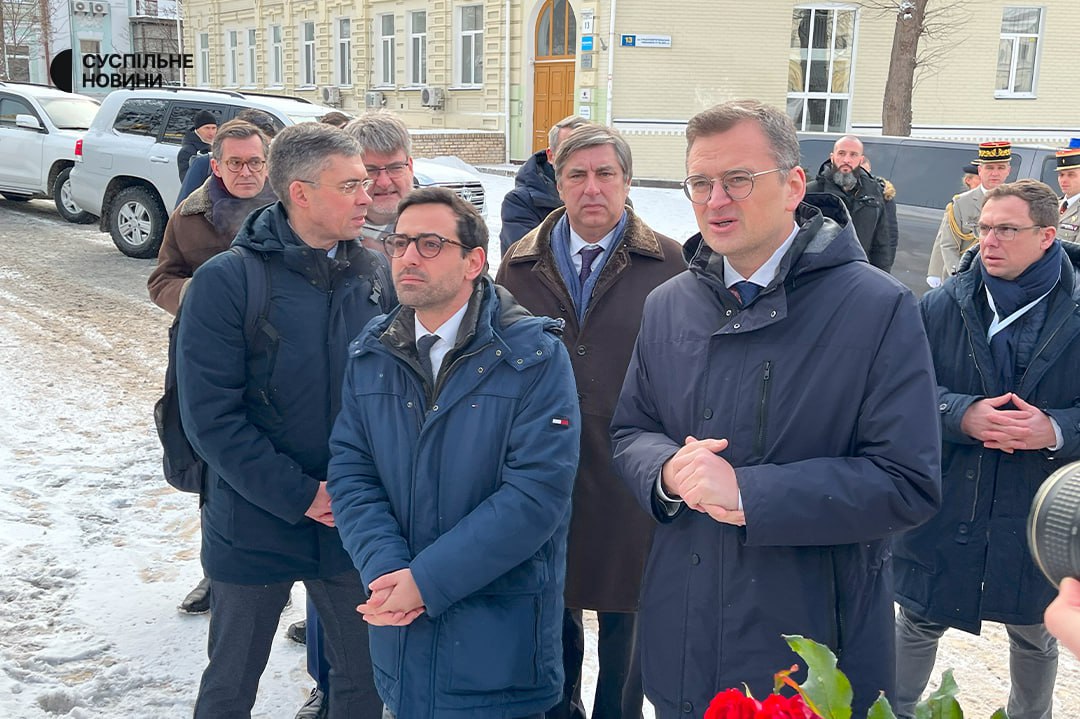 Міністр закордонних справ Франції Сежурне прибув до Києва. Це його перший офіційний візит в Україну. Разом з очільником МЗС України Кулебою вшанували памʼять загиблих біля стіни памʼяті на Михайлівській площ, а також обговорили подальші поставки систем та ракет для захисту українського неба, зокрема, дронів. Франція допоможе Україні виготовляти озброєння самостійно.