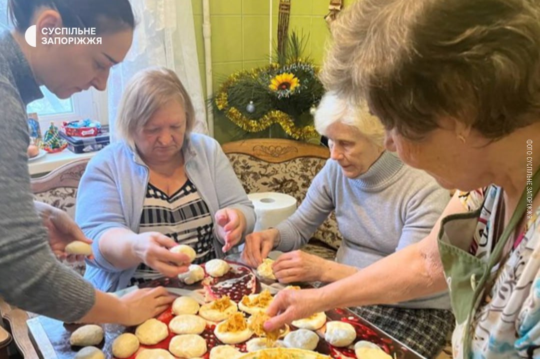 У Хортицькому районі Запоріжжя господині однієї з багатоповерхівок готують для українських військових пиріжки, булочки та рулети. За один день випікають і смажать до 800 виробів. Потім їх пакують у картонні коробки та передають на передову.
