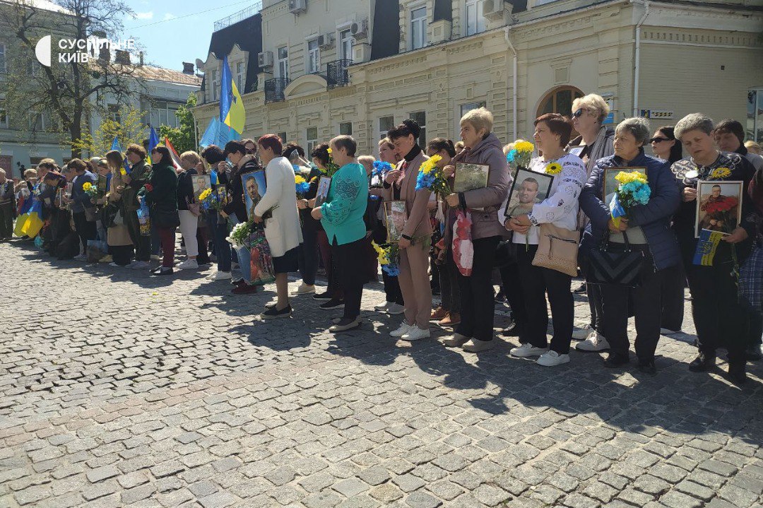 Біля Стіни пам'яті на Михайлівській площі у Києві зібралися родичі загиблих військових на молебень. Опісля вони вирушили до Офісу Президента, аби передати звернення щодо необхідності вирішення проблеми з виплатами.