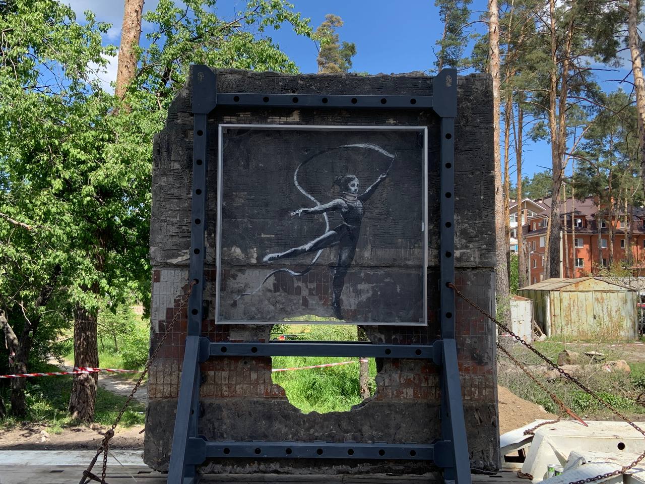 В Ірпені знесли будинки, які були пошкоджені через атаки військ рф. Частину стіни з будинку, на якій намалював графіті англійський вуличний художник Бенксі, вирізали. Її вага 7,5 тонн. Планується, що ця робота стане першим експонатом на Площі сучасного мистецтва.