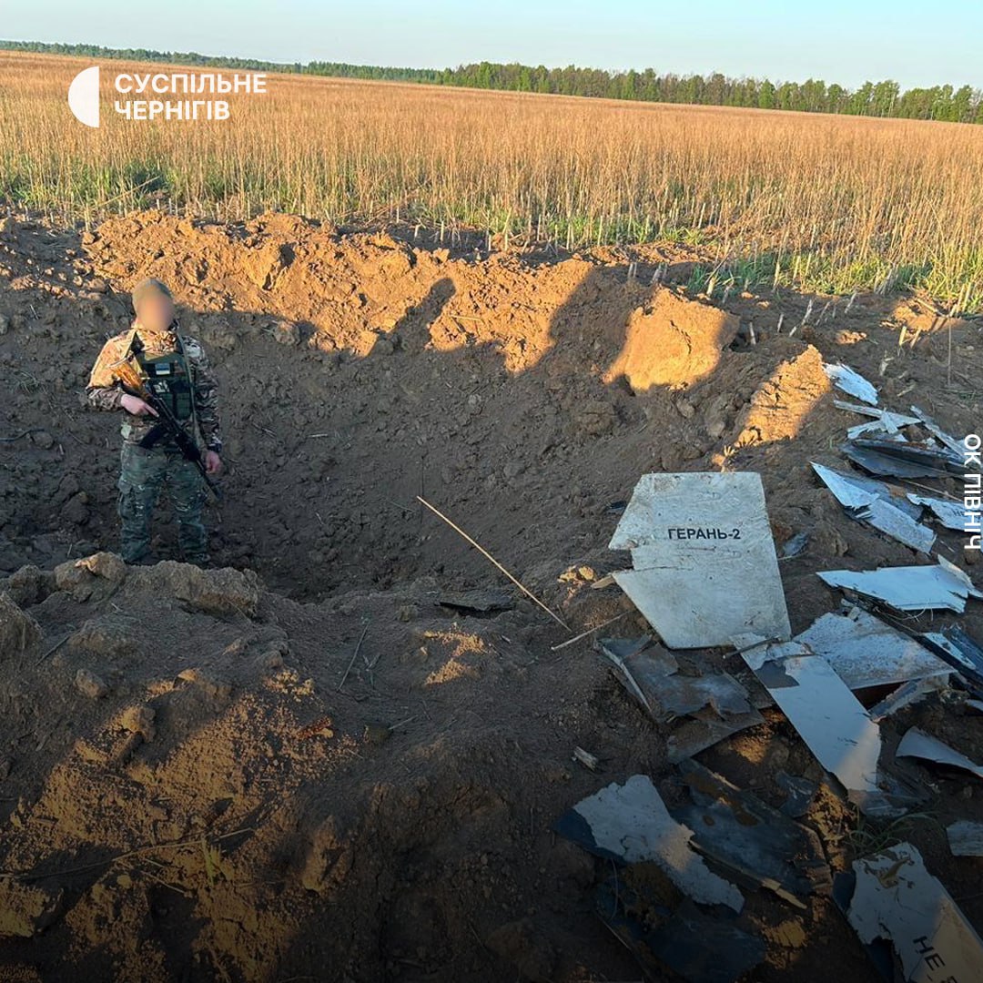 Вночі 13 травня в небі над Чернігівщиною військовослужбовці 105 прикордонного загону збили російський безпілотник. По ньому відкрили вогонь зі стрілецької зброї. "Шахед" вибухнув і впав у полі, не долетівши до визначеної цілі.