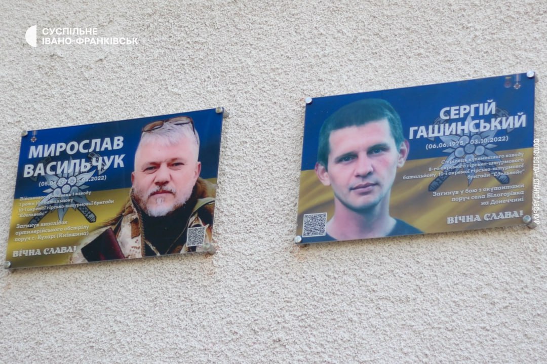 У Коломиї, що на Івано-Франківщині, відкрили дві меморіальні дошки воїнам 10 окремої гірсько-штурмової бригади "Едельвейс" — Сергію Гашинському та Мирославу Васильчуку.