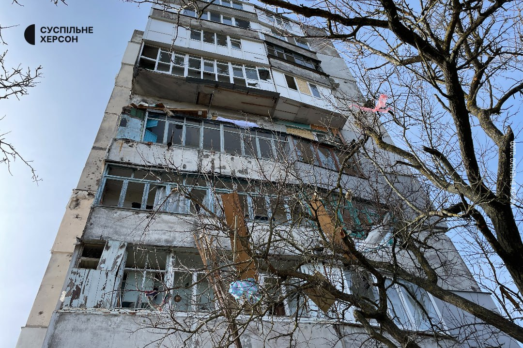 Вночі російські військові вкотре атакували Херсон. Під обстрілами опинилась одна з багатоповерхівок.