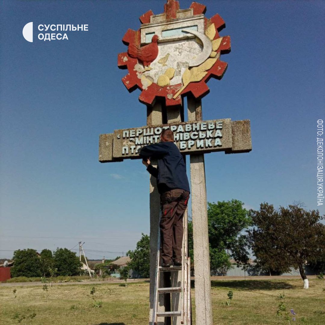 У селі Першотравневе на Одещині демонтували серп і молот та напис "комінтернівська".