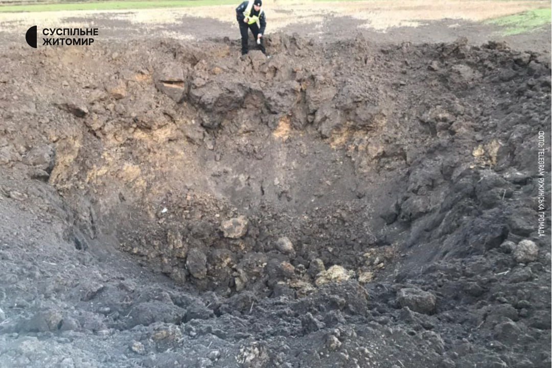 Вранці над Ружинською громадою сили ППО збили ракету, запущену армією рф. Внаслідок падіння уламків утворилася кількаметрова вирва.