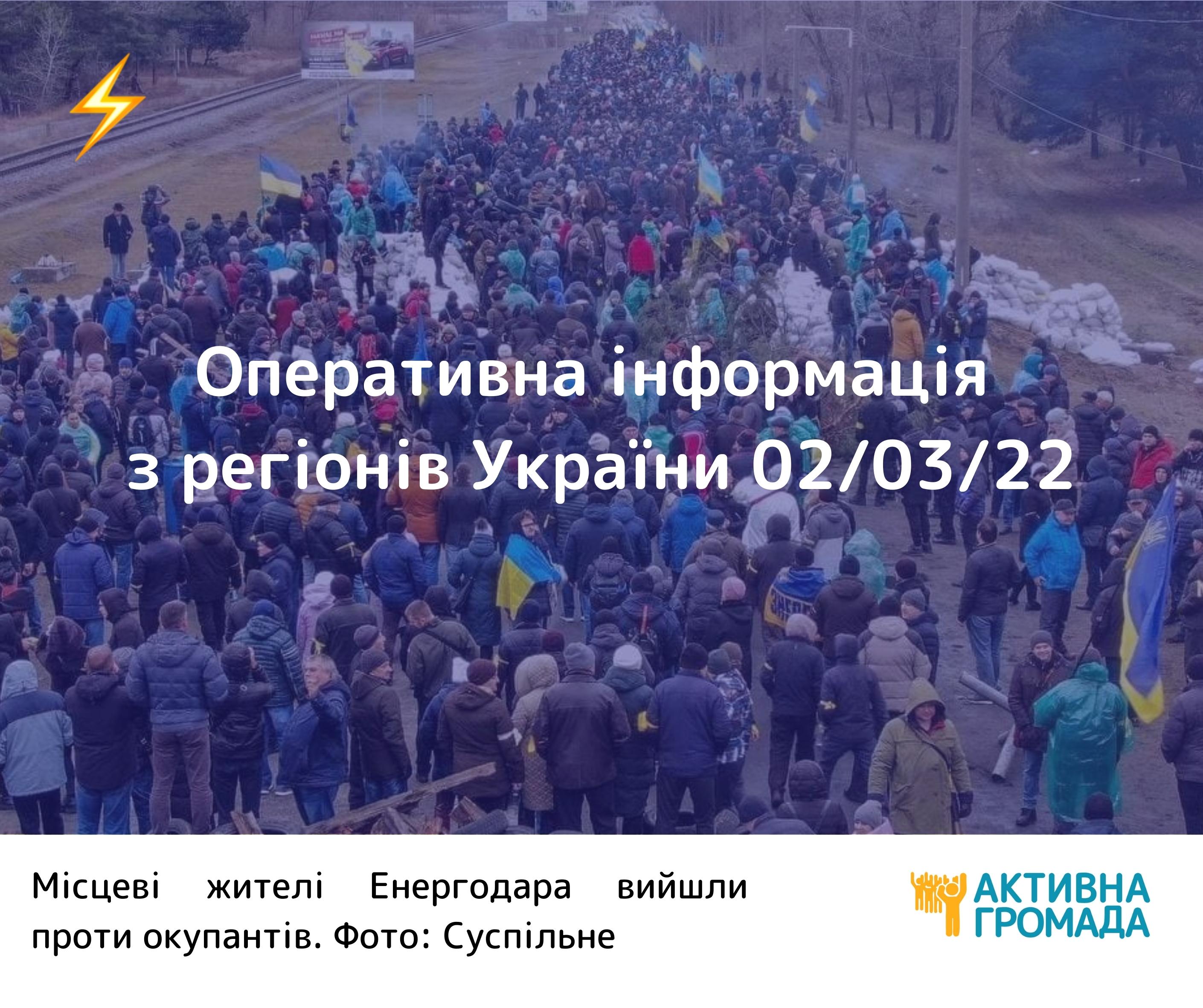 Оперативна інформація з регіонів України, в яких представлена мережа ВІ "Активна Громада" станом на 02.03.2022 року.