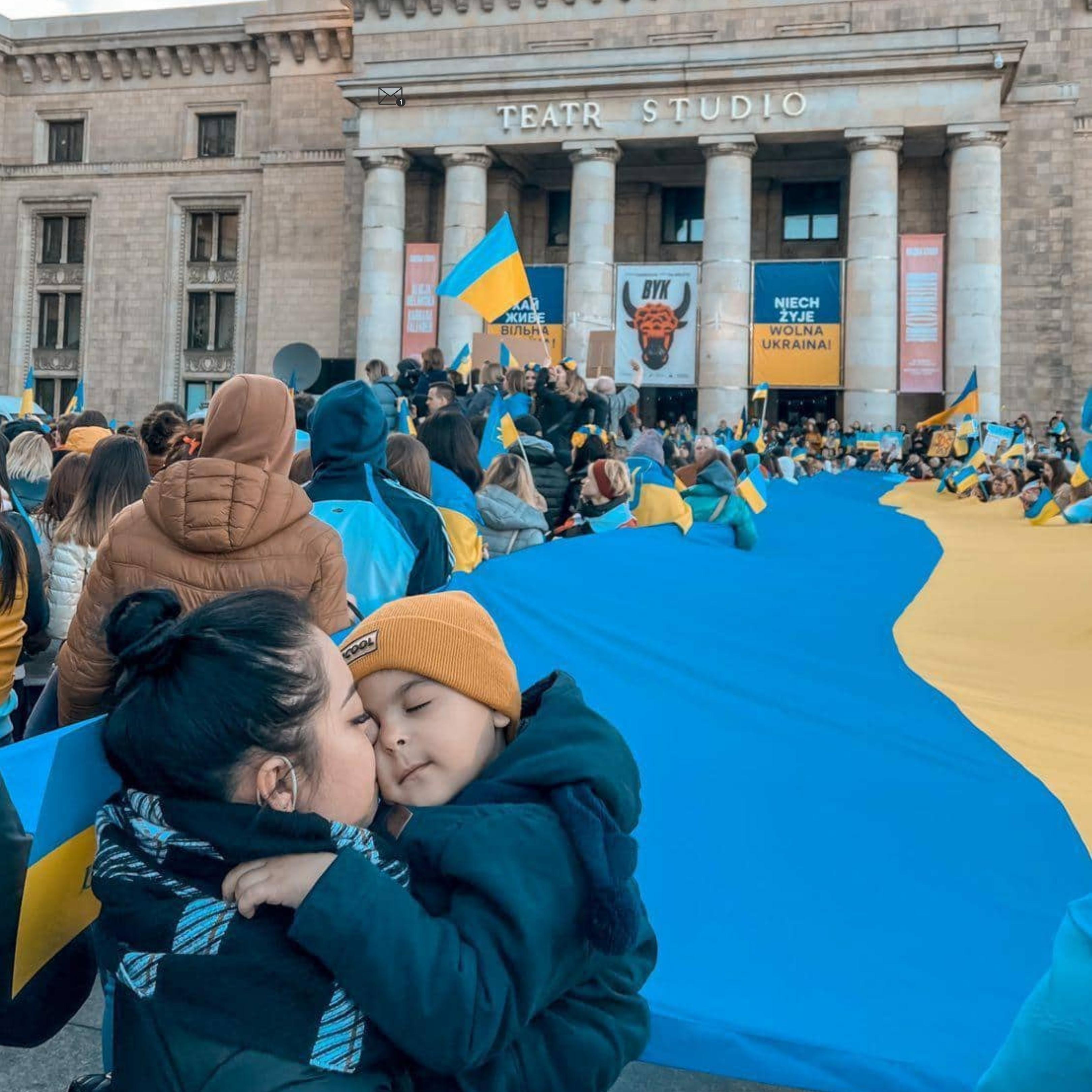 Ці три тижні я себе не відчувала біженкою, хоча і плакала щодня. Я водила Давида до дитячого клубу. Мами, які приводили дітей, паралельно вчили польську та розмовляли з психологом. І от ми там поплакали, виговорились, отримали підтримку, повчили польську мову, піднялися до діточок і вже всі посміхаються. Від поляків була приємно вражена. Кожен з людей, яких я зустріла в Польщі, настільки був готовий допомагати, настільки щиро співчував. Усі виходили на мітинги на підтримку України. Ми з Давидом також виходили на мітинг, коли був міжнародний марафон. Йому дуже сподобалося, всі з жовто-блакитними прапорами.