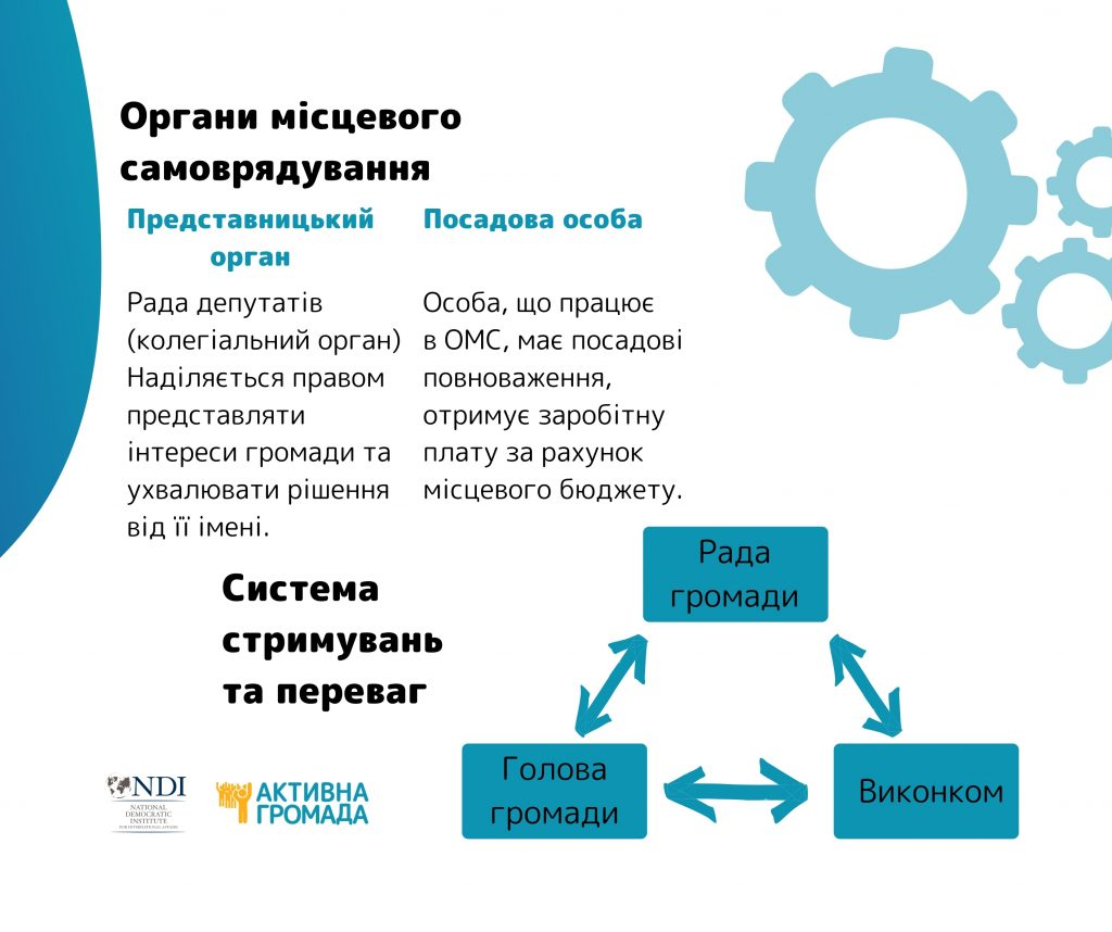 Нещодавно “Активна Громада” разом з Національним демократичним інситутом провела вебінар про місцеве самоврядування. Експертка з політичних наук Наталія Малиновська ґрунтовно розповіла про діяльність рад, виконкомів та голови громади. Ділимось з вами ключовою інформацією з вебінару.