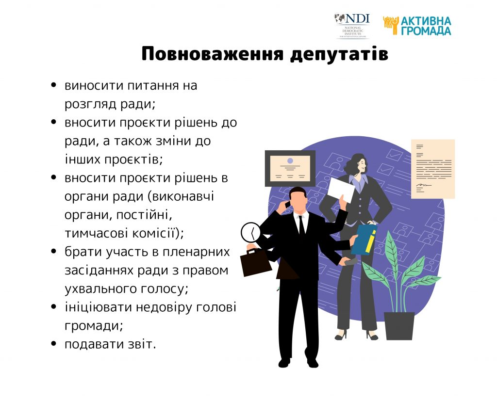 Рада – це колегіальний орган. Тому депутати не можуть одноосібно ухвалювати рішення. Розгляньмо їхні повноваження.