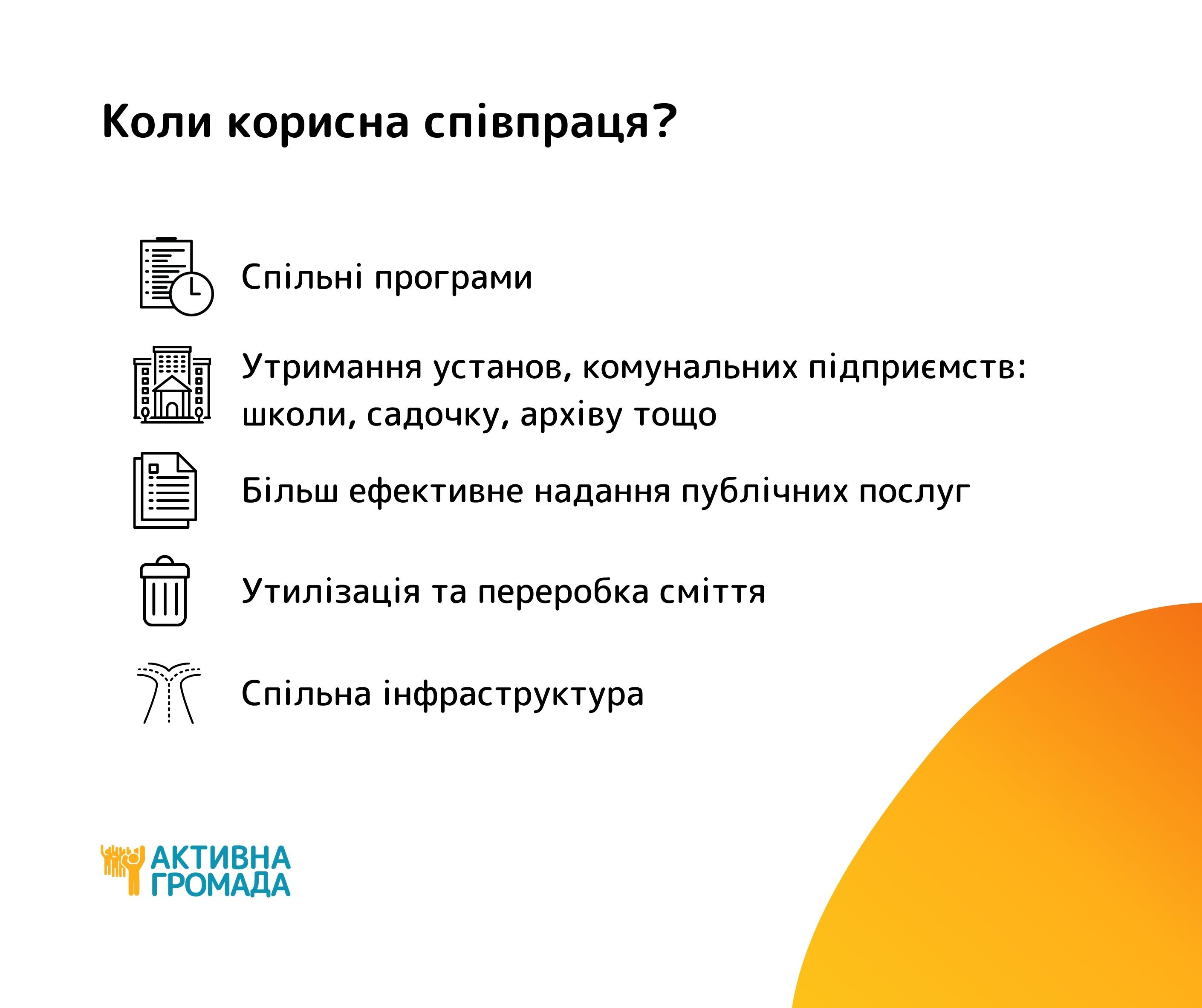 - Маленькі громади об’єднуються, тож співпраця відбувається всередині однієї ТГ.