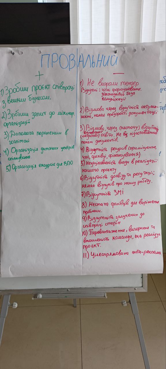 У Провальному сценарії учасниці намагались проаналізувати, чому волонтерство не завжди досягає поставлених цілей: «Відмовили через нестачу досвіду. Повинна бути прозора документація та відповідна освіта», - зазначила учасниця Анастасія.