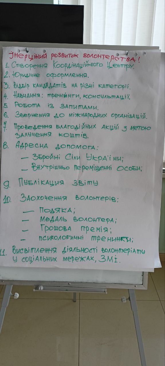 І, нарешті в Інерційному сценарії планується створити Координаційний центр всіх волонтерів у Дніпрі, з відповідним статутом та конкурсним відбором на посади. У підсумку учасники поділились власними враженнями щодо заходу: