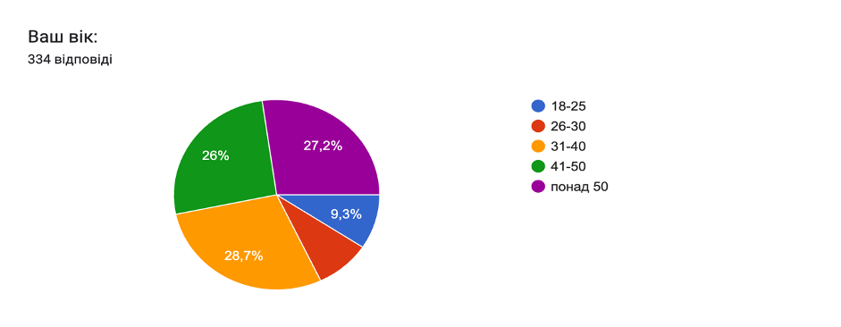 В дослідженні взяли участь 334 респонденти віком від 18 років.