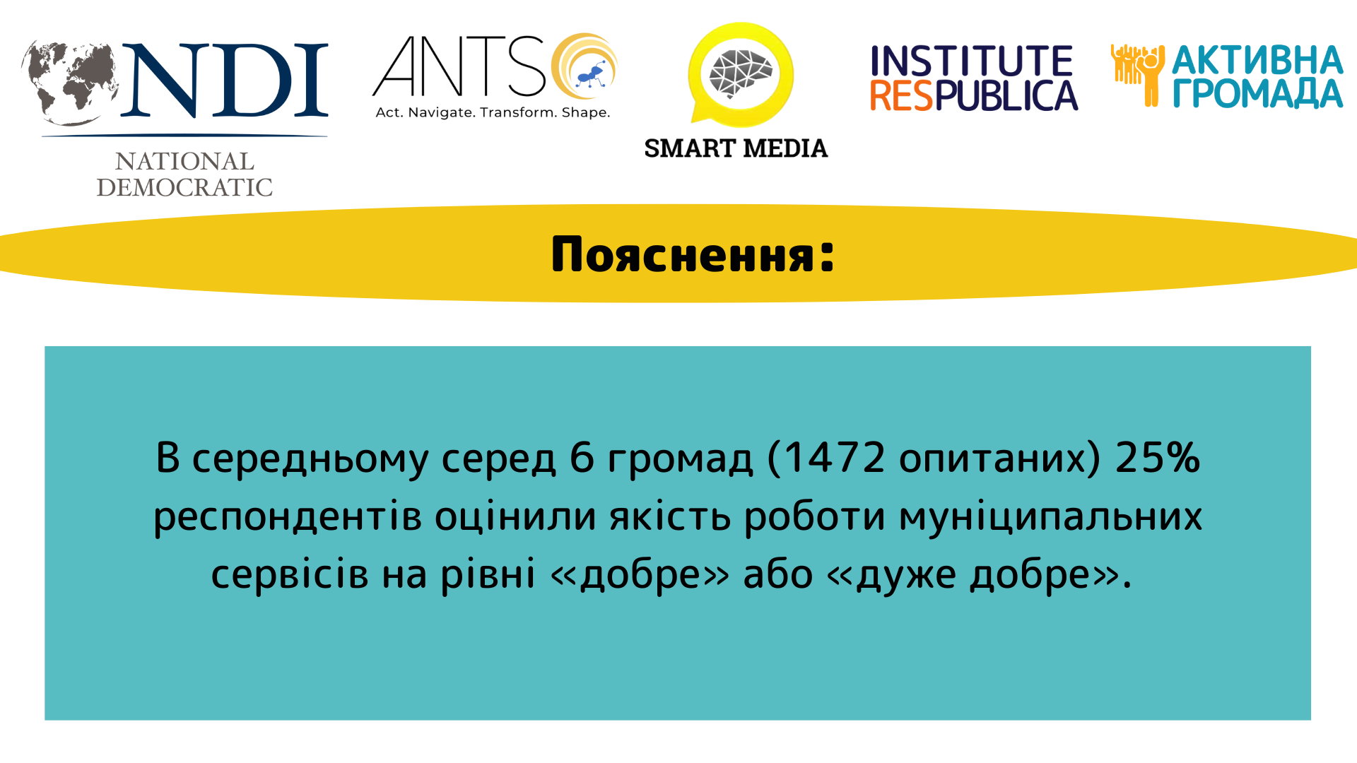 | Громада | Відсоток людей, які вважають, що муніципальні сервіси працюють добре або дуже добре |