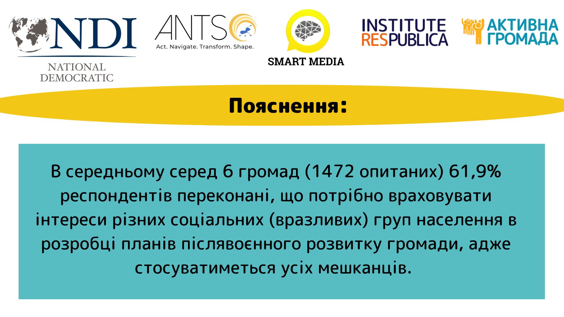 3. Чи потрібно на Вашу думку враховувати інтереси різних соціальних (вразливих) груп населення в розробці планів післявоєнного розвитку громади: