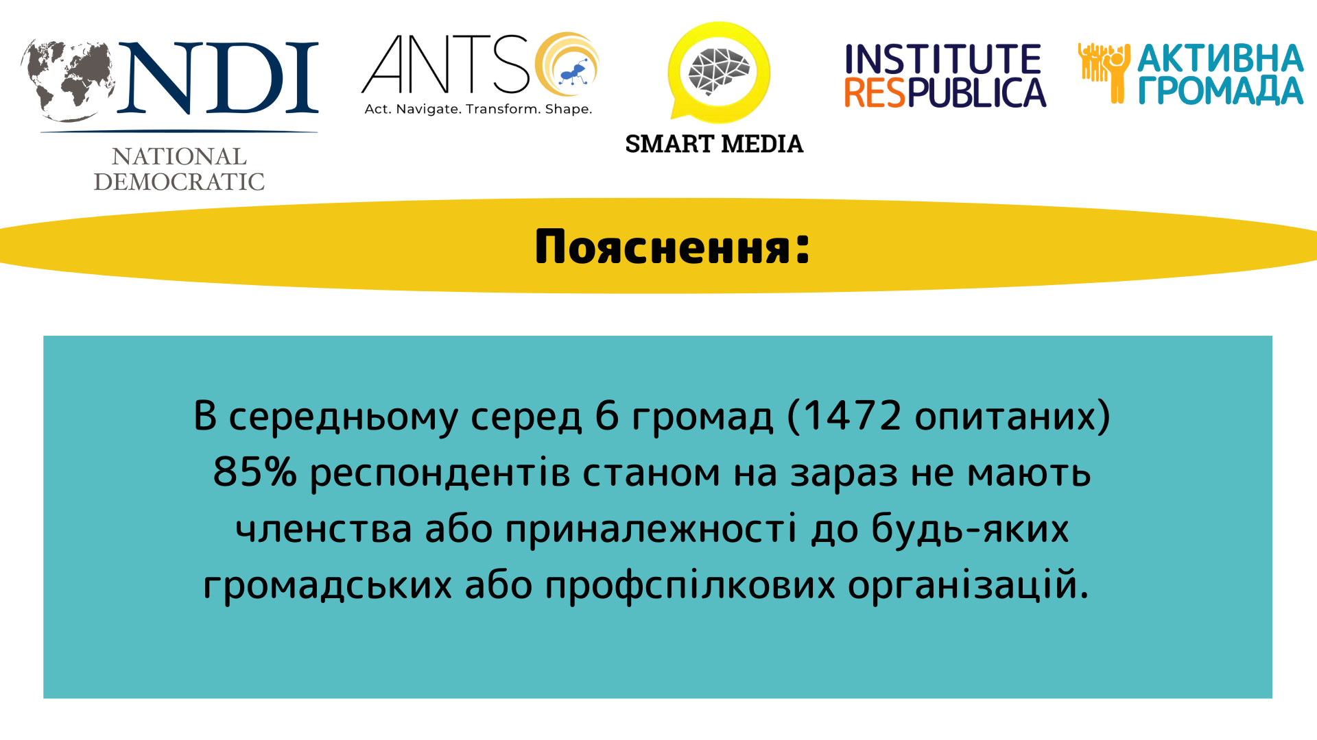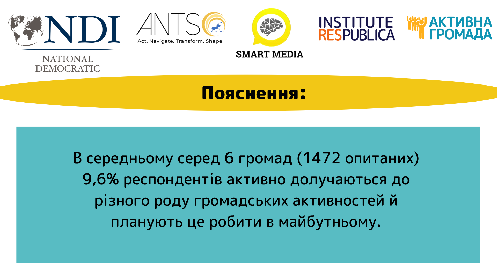 | Громада | Відсоток людей, які активно долучаються до громадських ініціатив |