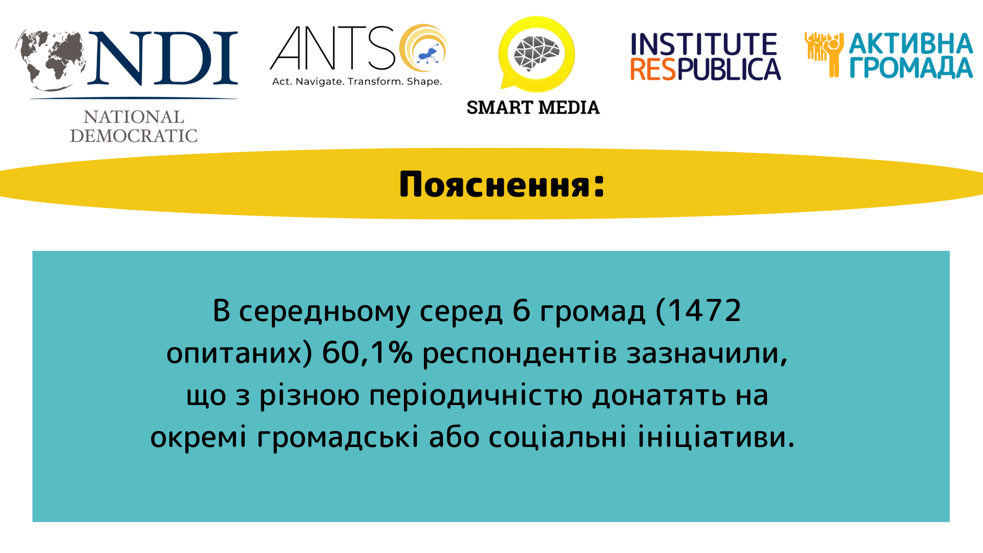Опитано 1472 респонденти загалом по шести громадах. В розрізі громад:
