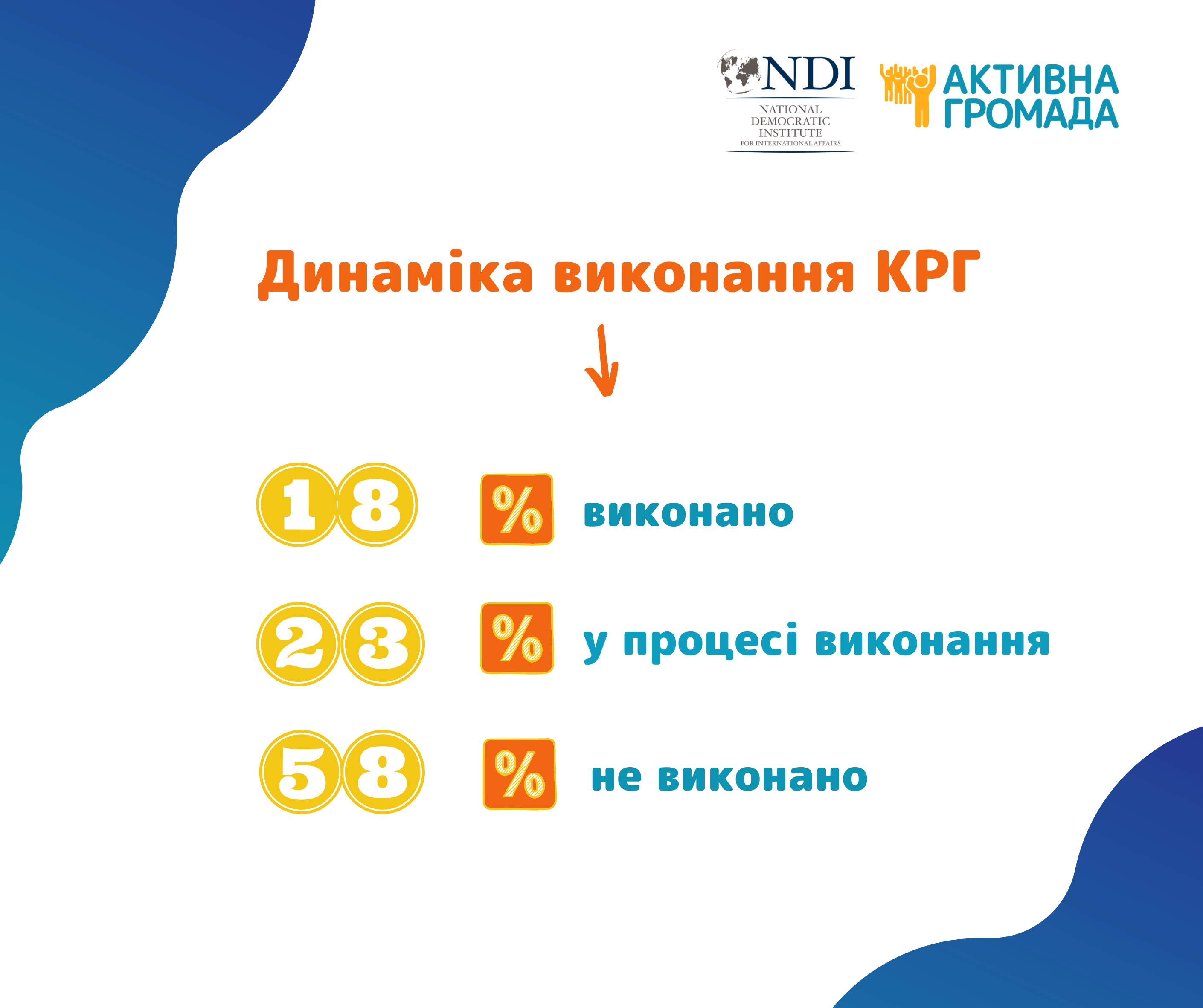 Варто зазначити, що зараз моніторинг з виконання КРГ знаходиться на другому етапі проведення моніторингу: відбувається аналіз необхідної інформації та визначаються індикатори моніторингу.
