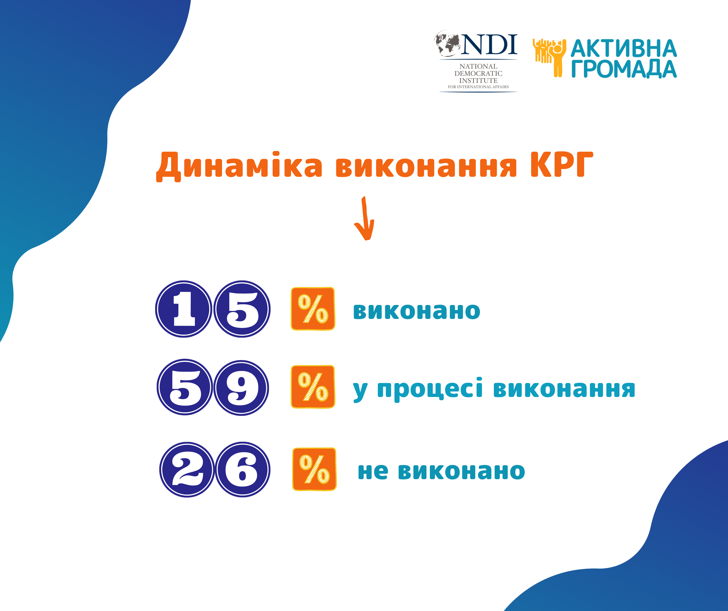 - виконано – 15% пропозицій з Карти Розвитку Громади;