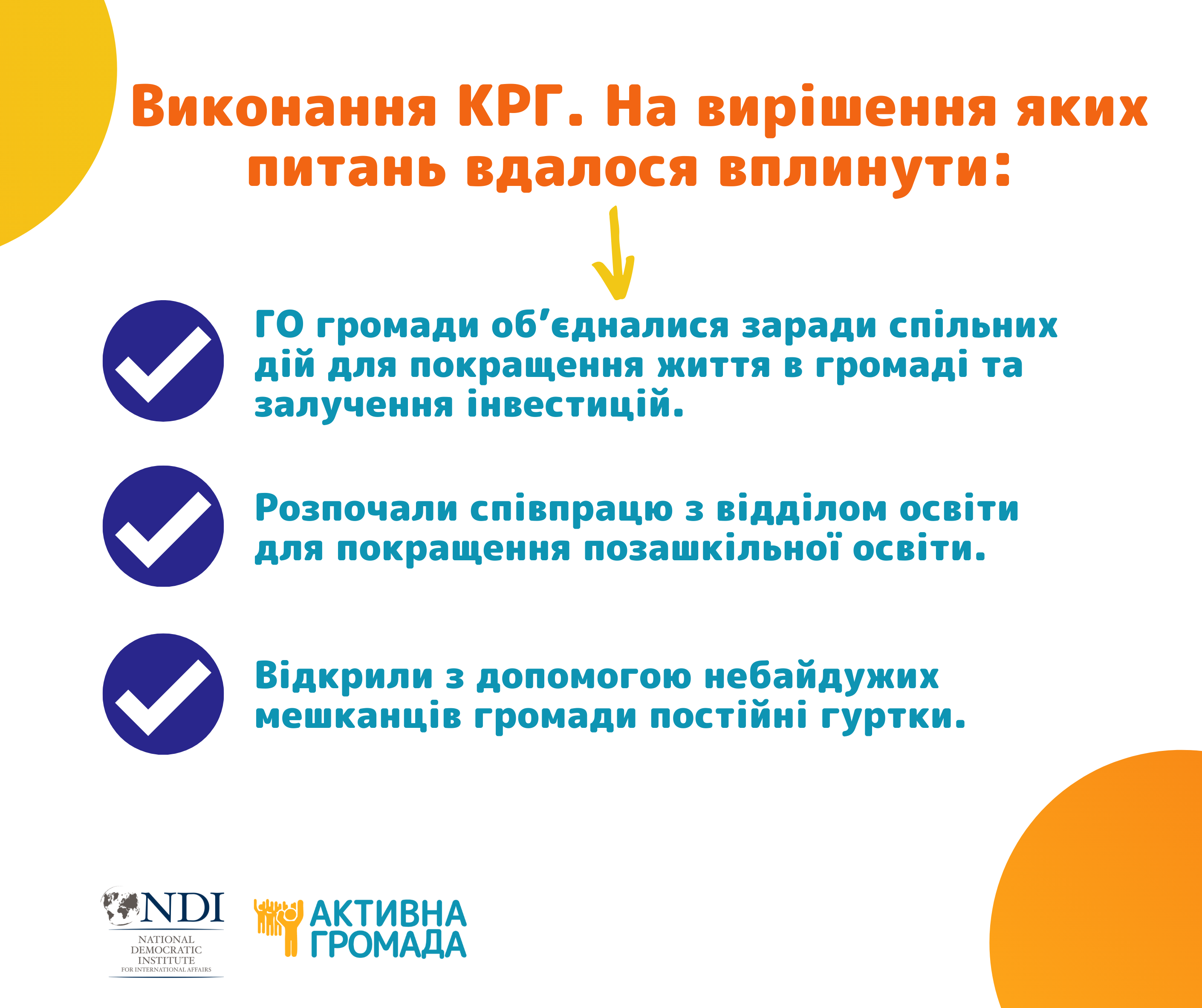 - ГО громади об’єдналися заради спільних дій для покращення життя в громаді та залучення інвестицій.